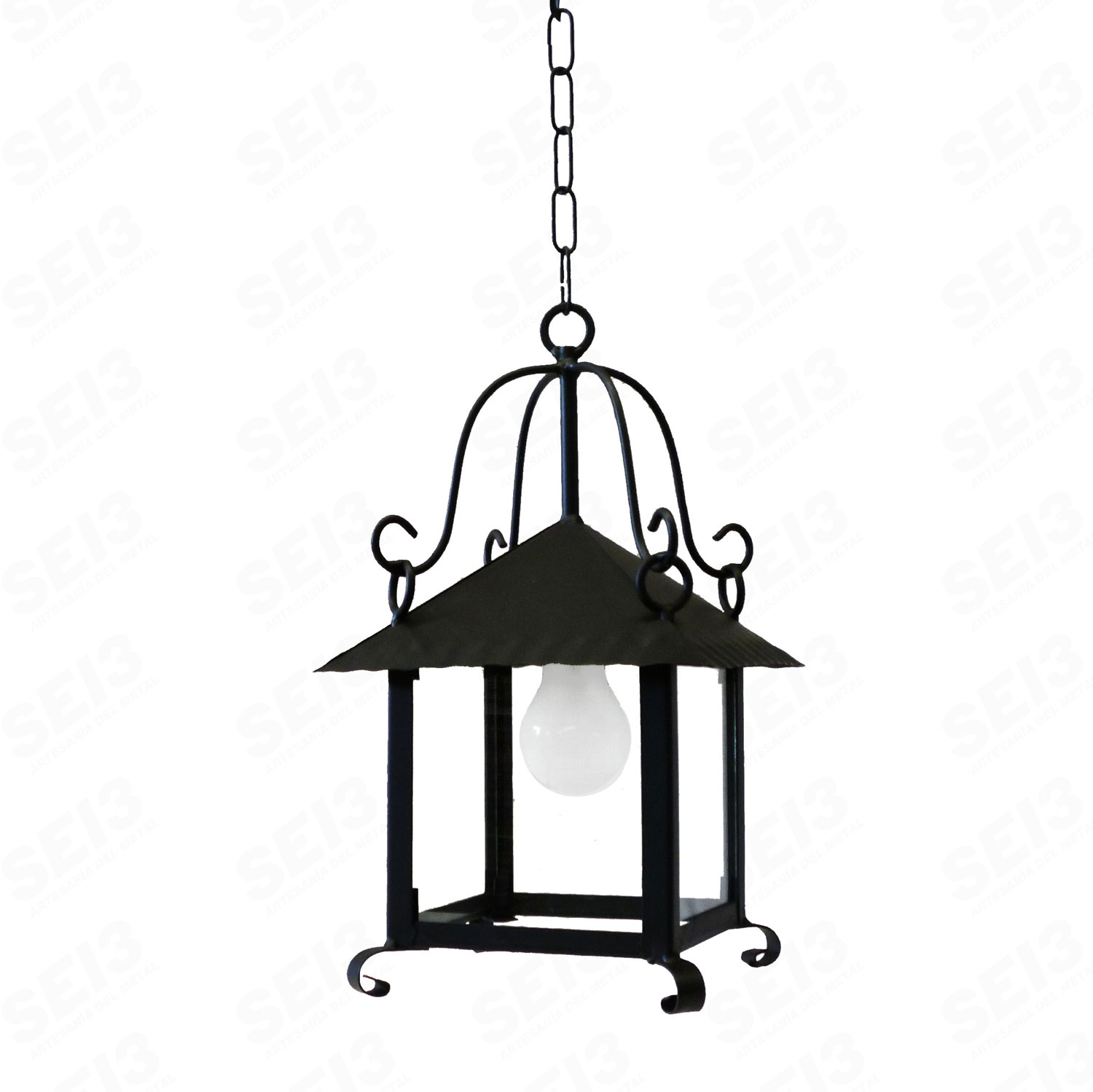 Incorpora portalámparas E27 con instalación con cable, cadena y florón, para la instalación del farol es aconsejable que lo realice un profesional.